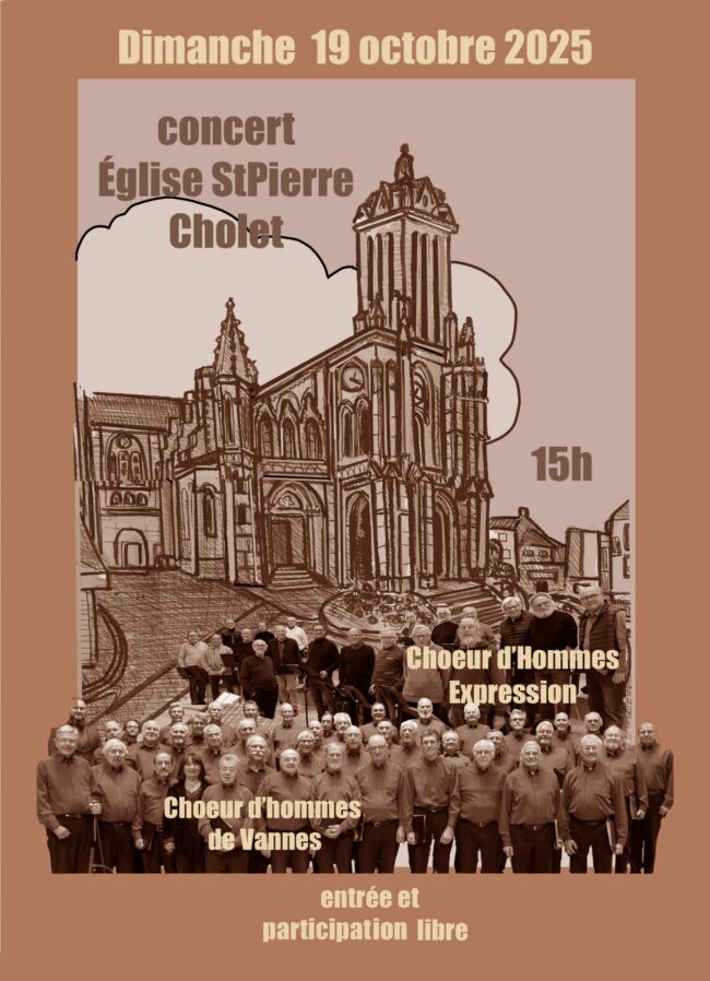 A l’invitation du Chœur Expression, reçu initialement en terre vannetaise pour un concert commun il y a un an à Sarzeau, le CHV était à l’affiche du concert retour ce dimanche 19 octobre en l’église Saint-Pierre de Cholet. Le temps maussade n’avait pas rebuté le public, venu en nombre pour écouter les deux chœurs. Chants…