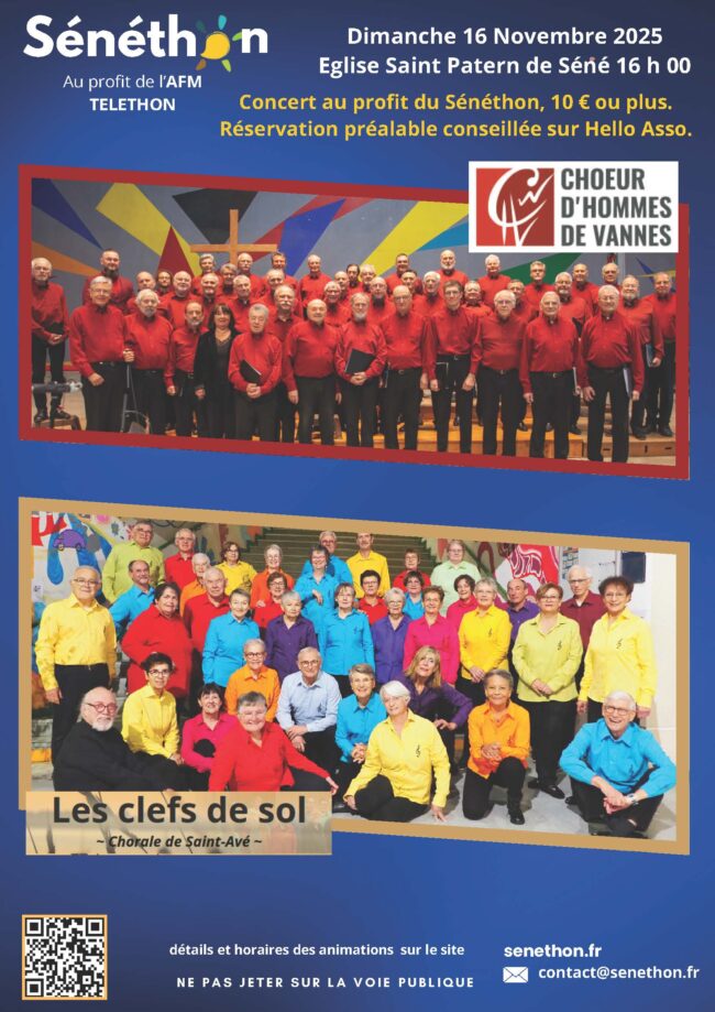 Concert au profit du SÉNÉTHON Dimanche 16 Novembre 2025 16h00 Église St Patern à SÉNÉ