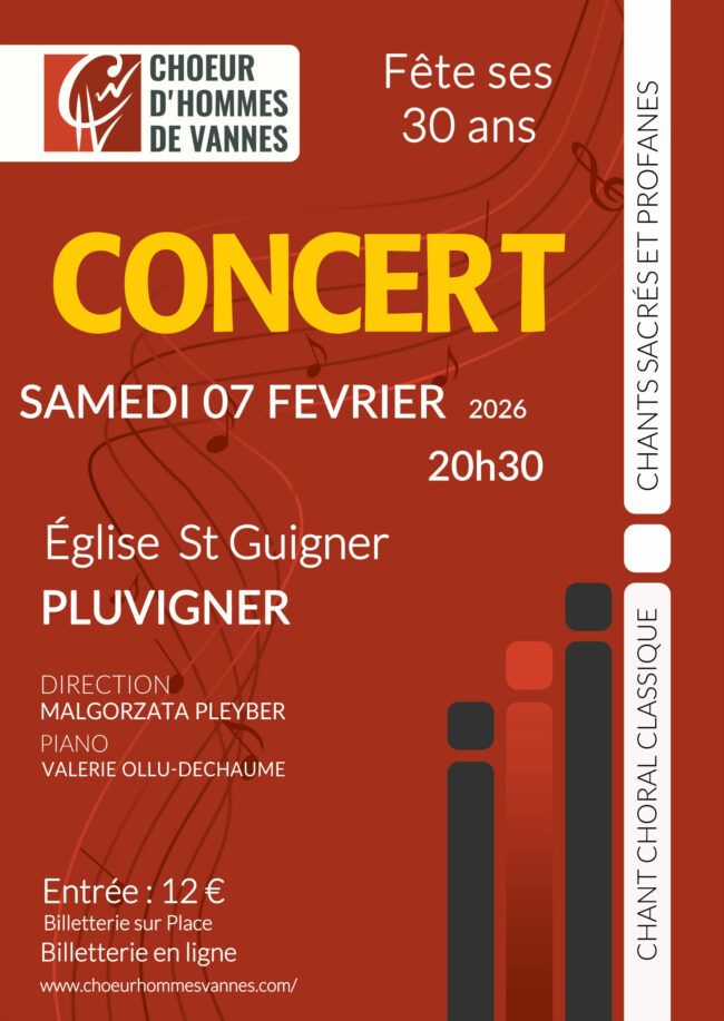 en avant première des 30 ans du chœur d’hommes de Vannes Samedi 7 février 26 – Eglise St Guigner de Pluvigner 20h30