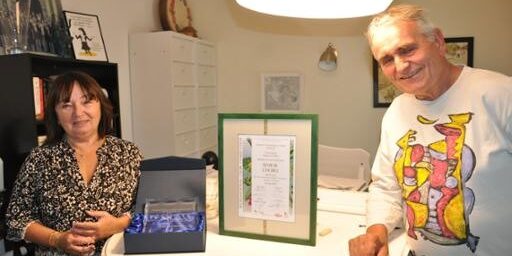 à coté des trophées gagnées par le chœur d’Hommes de vannes, Malgorzata Pleyber, Cheffe de chœur et, Marc Legrand président